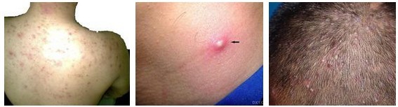 症状表现:初起为与毛囊一致的小丘疹,周围有明显红晕,其中心有毛发贯穿,迅速形成粟粒大小的丘疱疹、小脓疱,脓疱疱壁薄,不相融合,破后有小量脓性分泌物。
