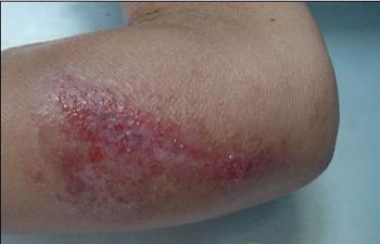 3、患处皮肤肥厚粗糙,嵴沟明显,呈苔藓样变。颜色为褐红或褐色,表面常附有糠皮状鳞屑,伴有抓痕,结痂及色素沉着。部分皮损上可出现新的丘疹或水疱,抓破后有少量浆液渗出。发生于手足及关节部位者,常呈破裂或疣状,自觉疼痛影响活动。