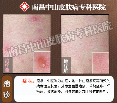 如您有任何疑问,你可在线咨询得到想要的治疗细节,专家会根据您的实际情况为您推荐最好的治疗方案并为您申请专项优惠。南昌中山皮肤性病医院全国免费咨询热线现已开通:0791-88116677。彻底治愈病毒性疱疹,从南昌中山开始。欢迎广大患者踊跃咨询。>>>如果还有什么疑问,可点击在线咨询专家!