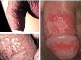 3、生殖器疱疹:主要为HSV-2亚型感染所致,生殖器、会阴及外阴部周围的大腿和臀部皮肤均可受累,出现疱疹、溃疡,及点状或片状糜烂。