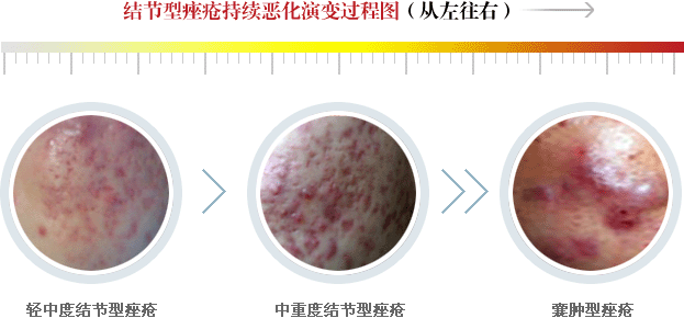 结节性得不到有效的祛除,结节以后,毛囊皮脂内既有脓液,细菌残体,螨虫尸体,皮脂腺和角化物,又有感染炎症浸润,触摸起来有肿块的感觉,挤压会有脓血或豆渣样东西溢出。