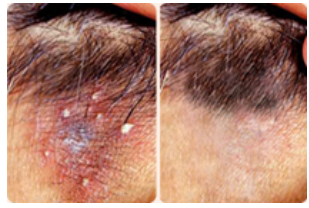 4、脱发:发生于头皮的毛囊炎可引起永久性脱发。