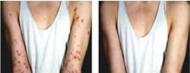 表现症状:双手和前臂的皮肤有大片的斑块。