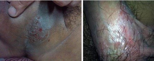 表现是:开始阴囊微红发亮,以后在阴囊缝两侧发生淡红色斑片,常常会合并出现口角炎、舌炎等。治疗后如果营养状态不好时还是会复发。