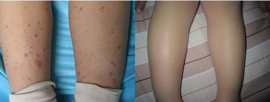 南昌中山皮肤病医院主任沈朝禄医师接诊的明明,做了详细检查,诊断为过敏性紫癜,建议选用“中药薰蒸免疫平和疗法”,发挥中医标本兼治的优势,采用内服特制中药、外部中药薰蒸治疗,多效并举,抗炎修复,光洁皮肤,安全无害,从源头入手,清除过敏原,有效治疗各种过敏性皮肤病。该设备在过敏性疾病的诊断和治疗方面具有突出的功效!通过一段时间的治疗后,明明无腹痛呕吐等症状,身上皮疹也逐渐恢复,皮肤又恢复成为小孩子该有的细嫩,人也精神了,也开朗了,他的父母也总算放心了。