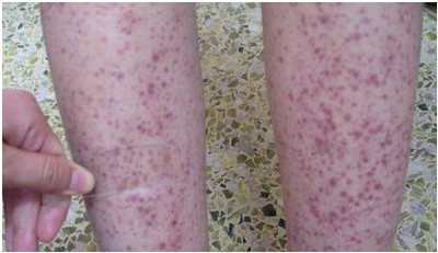 5、混合型:除皮肤紫癜外,其他三型中有两型或两型以上合并存在。