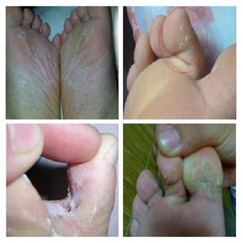 庄先生,39岁,山东人,患有脚气(足癣)半年多,一年前一次洗脚时发现脚底有几个小暗红点,不疼不痒,当时没太注意,以后小红点开始扩散,出现针尖到针头大小的深在水疱,并且开始发痒。