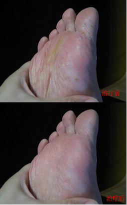 南昌中山皮肤病医院专业治疗各种皮肤病,治疗脚气采用采用“中药离子渗透分型癣化疗法”,利用先进的皮癣病wood伍德诊断仪及配合 内服我院研制的中药配方,治疗半个疗程(12天)就见到了明显的效果,瘙痒感明显减轻,晚上能好好的睡一个安稳觉了,原先扩散的暗红小点开始退化,片状鳞 屑开始脱落,脚底发硬皮肤开始变软,看到这样的结果患者非常高兴,对康复非常有信心。