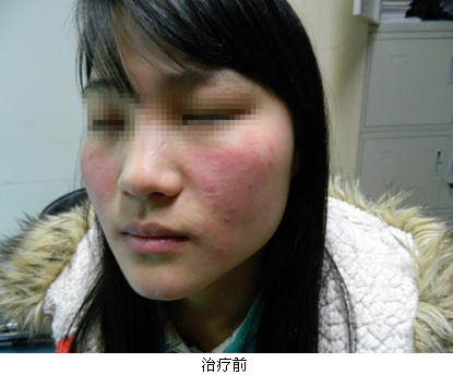黄小姐今年27岁,海南人,几年前,脸部突然患有皮肤过敏,以为是简单的皮肤过敏,就没有太在意,到药店买了药膏涂抹,开始有点效果,到后来多次发 炎,再 涂抹药膏一点效果都没有,反而越来越严重了,到最后发展到脸部红肿,剧痒,特别怕热气,在空调下或者太阳底下,就会发作,脸又红又肿、发烫发痒。在患病的 几年里走了不少大小医院,基本都是使用激素药物控制,只要有一天不吃药,就会复发,折磨的精疲力尽。