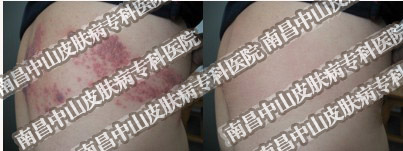 杨 某,男,31岁,最开始是在后背部出现水疱,周边发红,疼痛明显,继而水疱破烂,流浓,结疤,向四周感染,最终连成片。田先生十分着急,遂到附近一家医院 治疗,十天治疗后,疱疹消失。但一周后又在背部、生殖器部位出现,疼痛加剧。后辗转打听到中南昌中山皮肤病医院治疗疱疹效果好,于是入院治疗。经检 查,被确诊为单纯性疱疹,中山皮肤病医院专家采取了"中欧五联基因免疫克毒疗法"经过一段时间的治疗,痊愈出院。