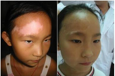 康复历程:去年小莲脸部出现了很多块巴掌大小的白斑,光光的,滑滑的,经过检查发现是白癜风,可把小莲的父母急坏了,但是小莲的父母带她去医院检查时,某医院医生并没有夸大的说能治好,而是劝小莲父母去专业的医院去治疗,孩子还小,不能耽误孩子一生啊,然后根据了解,知道了南昌中山皮肤病医院,并去那里医治,三个月后,孩子得到了康复。