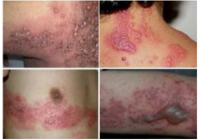 一、顿挫型带状疱疹:仅发生红斑、丘疹、而不形成水疱,即自行消退。