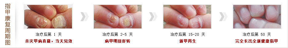 ★药力强劲,疗效确切——根据论甲沟炎患者病史长短、病情轻重,恢复期有所不同。轻度患者短期内即有明显效果,5-7天,祛除病甲,有效的杀灭致病菌肥,患者不用长期受甲沟炎折磨,20天左右,逐渐长出新甲,50天即可痊愈。