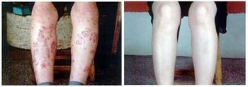 王先生,宁波人,54岁,在家以前以养殖业为主,患有湿疹近8年,严重时,双腿部皮肤起小丘疹水泡,后来发展成渗液、干燥、结痂、粗糙肥厚与裂口,并伴着钻心的痒,搔得血迹斑斑,特别夜里瘙痒得难以入睡。白天又不能好好的干活,年年治疗,好了又复发,一直不能根治。