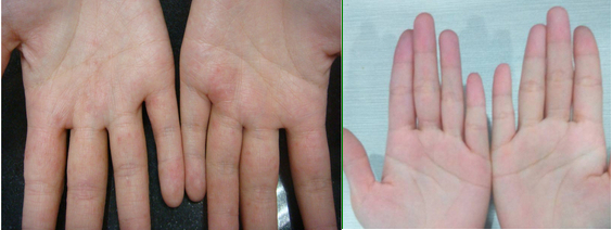 治疗后情况:接受“消癣净毒疗法”,3天后,症状明显减轻,汗疱疹缩小。1个疗程后,汗疱疹消失,获得了康复。