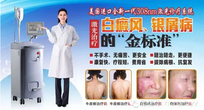 三祛除(dispel):中山皮肤病医院花巨资最新引进的美国Ex-308nm准分子激光治疗系统利用激光有针对性祛除白斑。