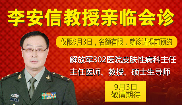9月3日解放军302医院皮肤性病科主任李安信教授将莅临我院会诊