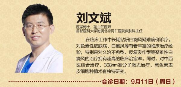 9月11日首都医科大学附属北京同仁医院皮肤科副主任医师刘文斌莅临我院会诊