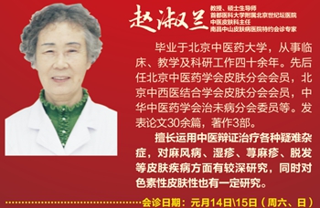 1月14、15日 首都医科大学附属北京世纪坛医院中医皮肤科主任医师、教授、硕士生导师赵淑兰莅临我院会诊